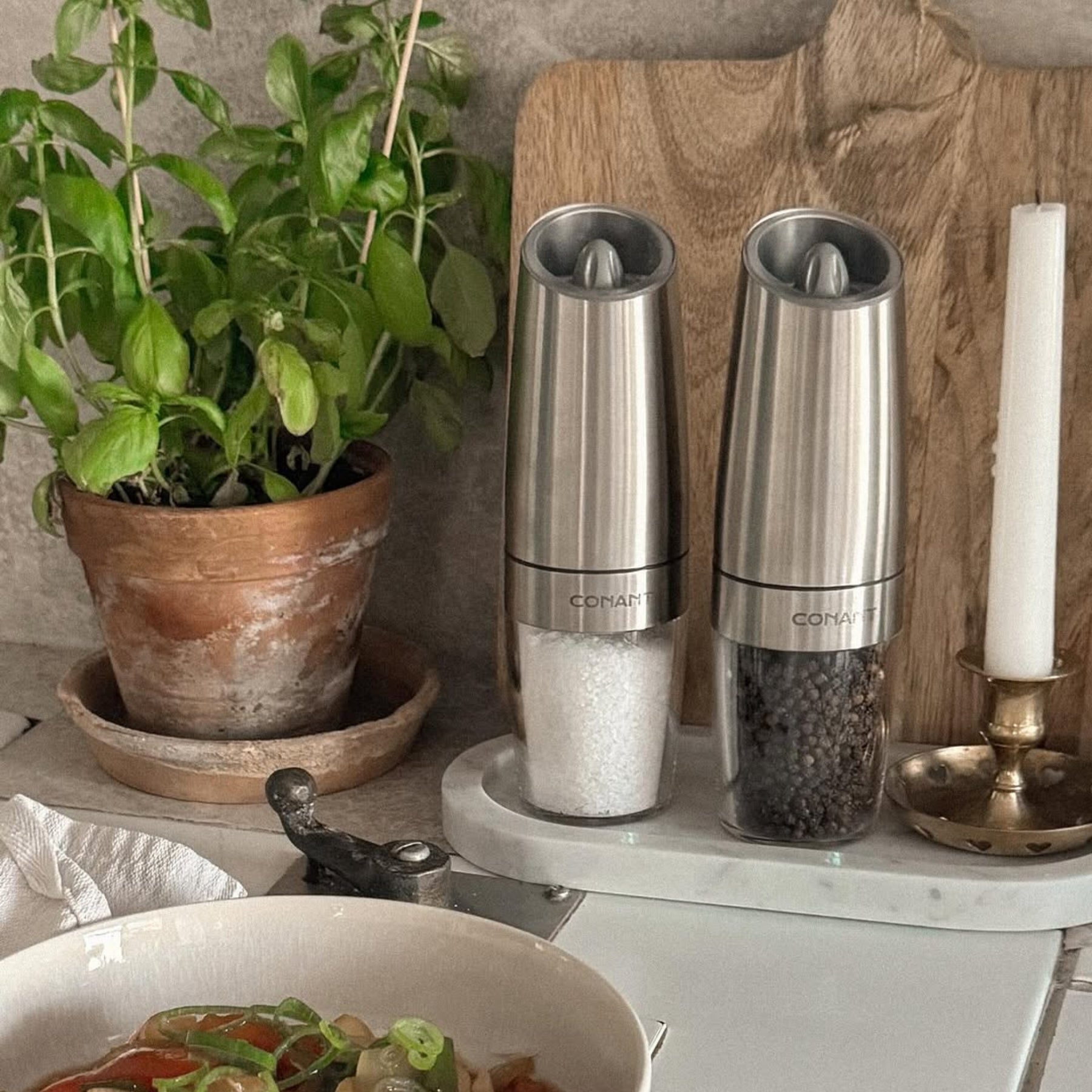 Vår elektriska salt- och pepparkvarn aktiveras automatiskt när du vänder den. Med kraftfull prestanda, gedigen design och smidig användning lyfter den varje måltid både i smak och upplevelse.