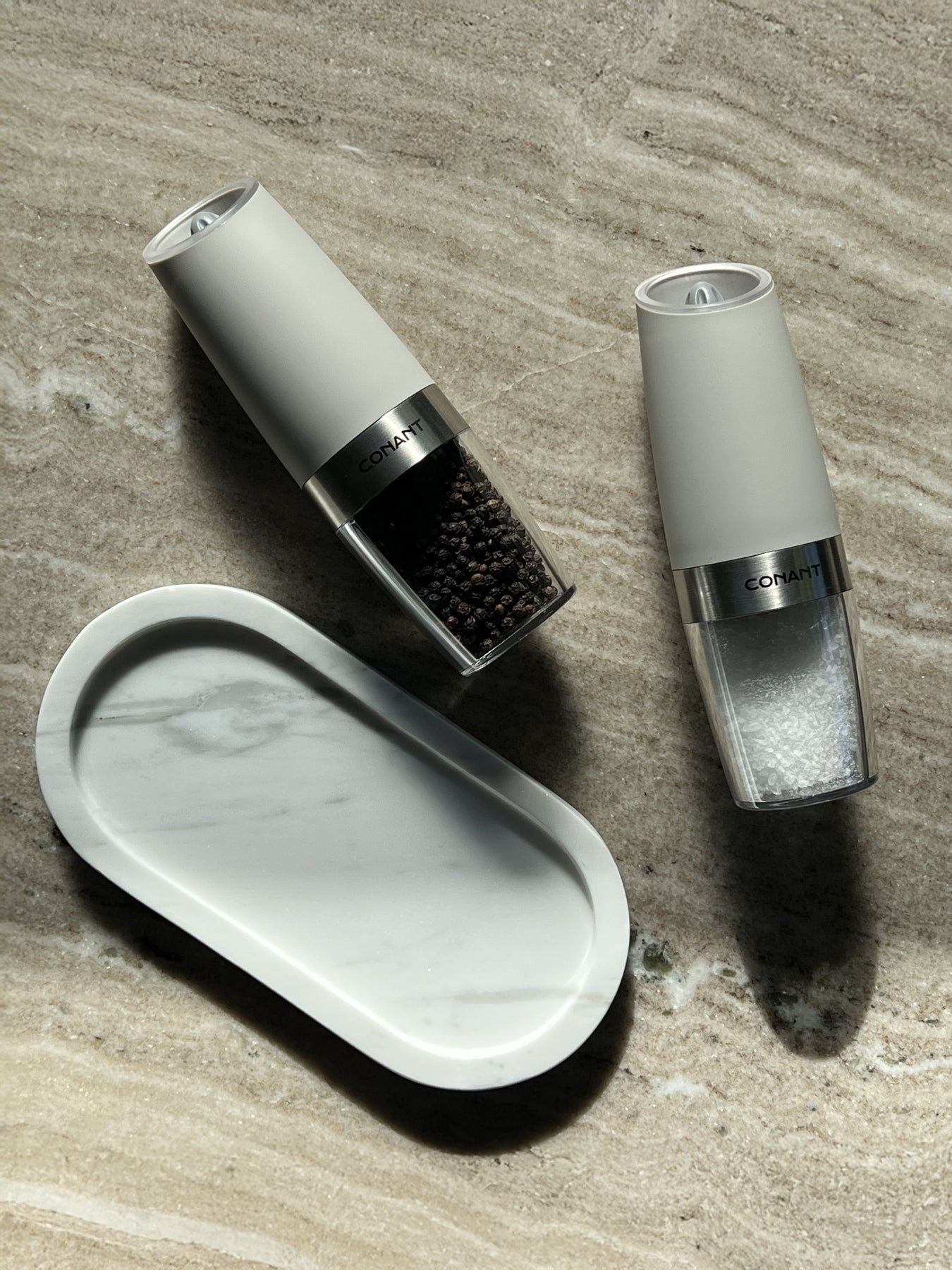 Vår elektriska salt- och pepparkvarn aktiveras automatiskt när du vänder den. Med kraftfull prestanda, gedigen design och smidig användning lyfter den varje måltid både i smak och upplevelse.