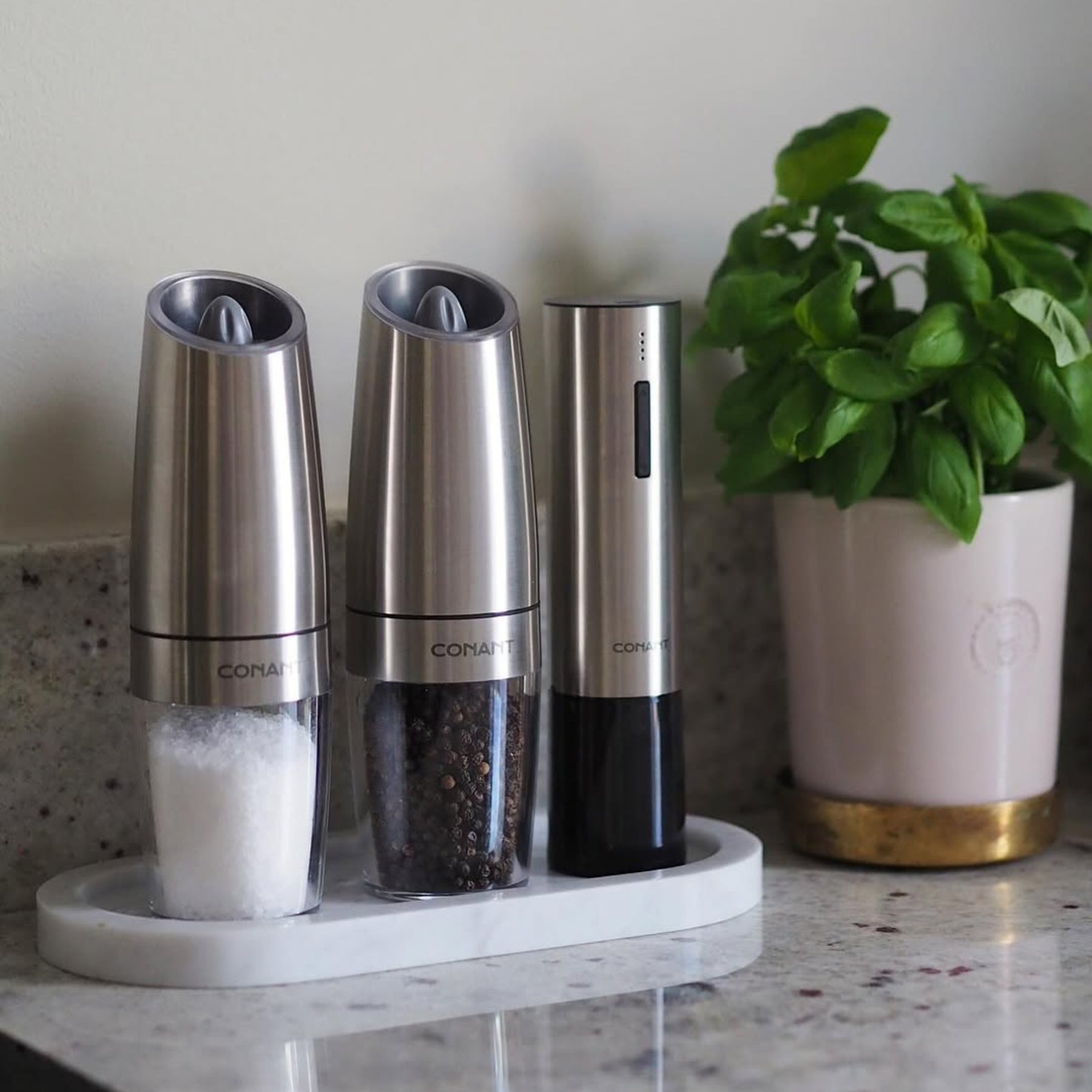Komplettera dina kvarnar med en marmorbricka som lyfter helheten.